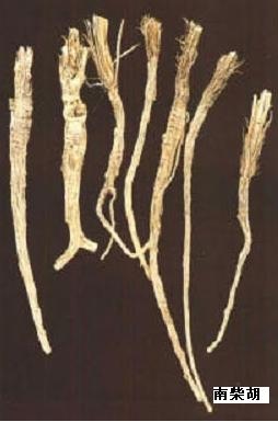 又名:软柴胡(《本草汇言》),香柴胡。为植物狭叶柴胡的根。外形与北柴胡相似,惟根较细,分歧少,多弯曲不直,长4~10厘米,直径6~10毫米,表面红棕色,有纵皱及须根痕,顶部无疙瘩头,而有地上茎叶枯死后遗留的毛状纤维。质脆,易折断,断面平坦,呈淡棕色。气味同北柴胡。以根条粗长、无须根者为佳。