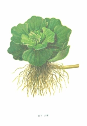 摘录《中药大辞典》《中华本草》:大浮萍拼音注音Dà Fú Pínɡ别名水浮莲、天浮萍、水浮萍;大浦藻、浮薸、浮萍、连花薸、水白菜、草包草、水鞭蓉、翻萍、大番萍、水荷莲、肥猪草、红莴苣