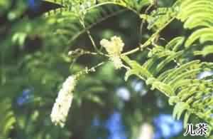 原形态落叶乔木,高6~13米。小枝细,有棘刺。叶为二回双数羽状复叶,互生;叶轴基部有棘针双生,扁平状;叶轴上着生羽片10~20对;每羽片上具小叶30~50对,小叶条形,两面被疏毛。8~9月开花,总状花序腋生,花萼基部连合成筒状,上部分裂,有疏毛;花瓣5,长披针形,黄色或白色;雄蕊多数,伸出花冠之外;雌蕊1,子房上位,长卵形。荚果扁而薄,连果梗长6~12厘米,宽1~2厘米,种子7~8粒。