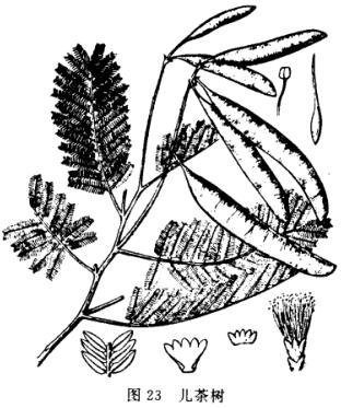 原形态落叶乔木,高6~13米。小枝细,有棘刺。叶为二回双数羽状复叶,互生;叶轴基部有棘针双生,扁平状;叶轴上着生羽片10~20对;每羽片上具小叶30~50对,小叶条形,两面被疏毛。8~9月开花,总状花序腋生,花萼基部连合成筒状,上部分裂,有疏毛;花瓣5,长披针形,黄色或白色;雄蕊多数,伸出花冠之外;雌蕊1,子房上位,长卵形。荚果扁而薄,连果梗长6~12厘米,宽1~2厘米,种子7~8粒。